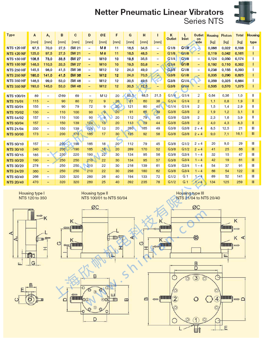 往復式振動器NTS120/NTS180/NTS250/NTS350/NTS5001/NTS7002特點:
