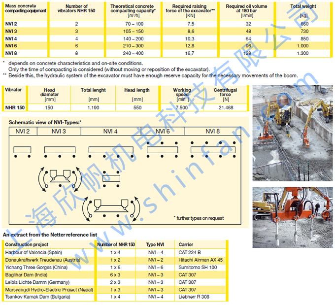 大塊混凝土壓實系統(tǒng)與NETTER NVI液壓 插入式振搗器NHR 150 ,壓實粗粒度的大體積混凝土 對于安裝于液壓挖掘機(jī)和裝載機(jī)