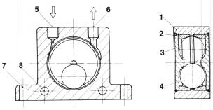 殼體兩端置有尼龍端蓋,用來(lái)定位鋼球,同時(shí)防止灰塵和水的進(jìn)入,因此可使本機(jī)工作于多塵潮濕的環(huán)境中。進(jìn)、出氣口均有標(biāo)準(zhǔn)管螺紋,使排氣可由管路引出,確保排氣無(wú)障。為適應(yīng)不同安裝位置,本機(jī)上有4個(gè)安裝孔:兩個(gè)水平,兩個(gè)垂直。
