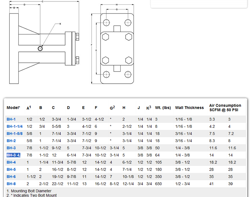 NAVCO vibrators型號包括:BH-1,BH-1-1/4,BH-1-5/8,BH-2,BH-3,BH-3 -L,BH-4,BH-5,BH-6,BH-8,氣動振動器獨特的navco BIN映射方法涉及的儲存容器和其預期的散裝材料的詳細的評價。建議的基礎(chǔ)上的各種因素,包括體積密度,粒度,水分,溫度,容器的大小和形狀。navco氣動活塞振動器的大小及其影響區(qū)域的應用是確定的。振動器位于料倉或漏斗,重疊區(qū)域影響;振子在一個序列中,提供最優(yōu)流模式和最小公用工程消耗操作。